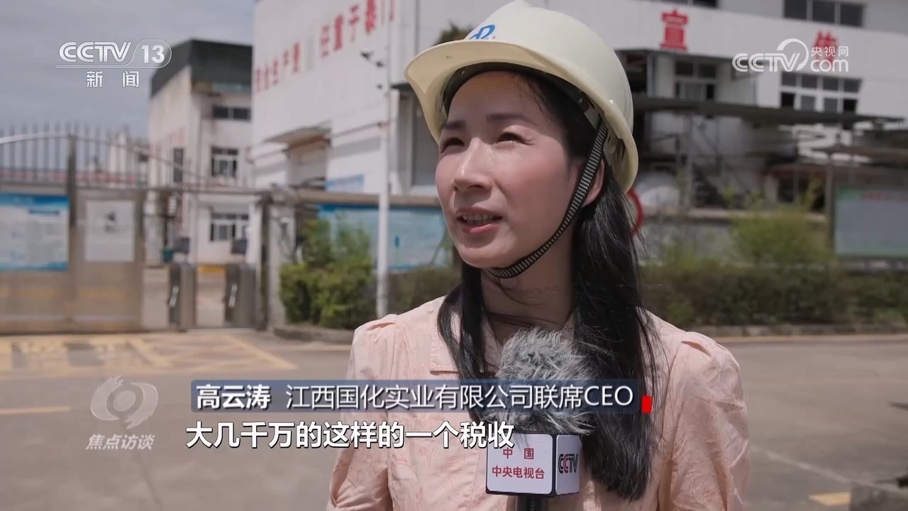 江西國化實業(yè)有限公司聯(lián)席CEO高云濤:“我們基本上每年要交大幾千萬的稅收,從稅收貢獻和經(jīng)濟貢獻上,對當?shù)貋碚f肯定是比較核心的?!?/p>