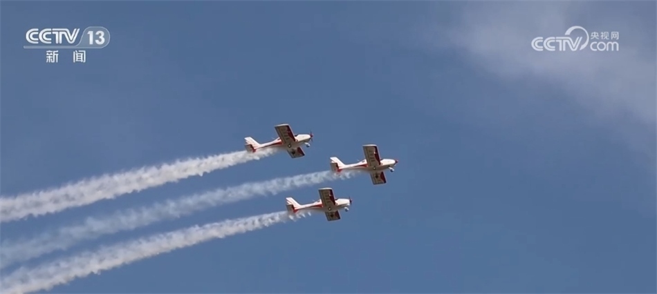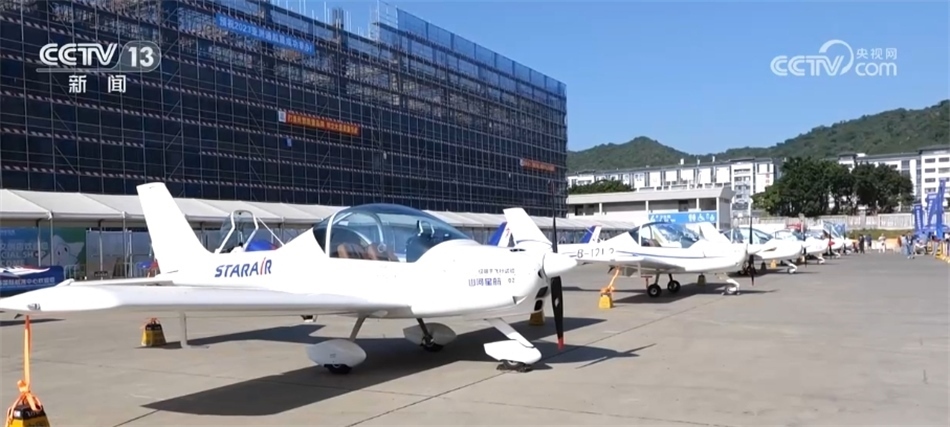 總臺央視記者 吳天白:在我身后停放的20架通用飛機與飛行表演中“山河”飛行表演隊所駕駛的飛機是同款。這款飛機不僅動力強勁、性能出色,還是我國首款自主研發(fā)制造可用于飛行表演的運動型通用飛機。