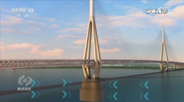 鄭清剛:“鐵路一側(cè)的荷載比公路一側(cè)要重8.6噸,就是每延米有8.6噸,就像兩個人抬東西,比如一頭重量大了的話,就會發(fā)生一頭高一頭低的情況。我們是通過一些結(jié)構(gòu)上的辦法,采用不同強(qiáng)度的斜拉索來匹配這個受力?!?/p>