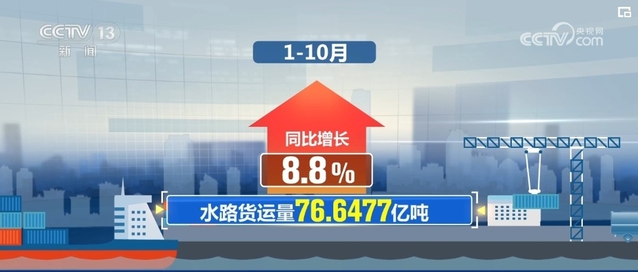 貨運(yùn)方面,1—10月,我國公路貨運(yùn)量332.9567億噸,同比增長8.2%;水路貨運(yùn)量達(dá)76.6477億噸,同比增長8.8%。