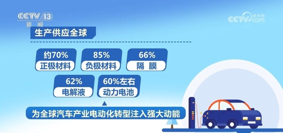 工業(yè)和信息化部表示,我國已建立了結(jié)構(gòu)完整、有機協(xié)同的新能源汽車產(chǎn)業(yè)鏈、供應鏈體系,涵蓋基礎(chǔ)材料、零部件、整車、制造裝備等全鏈條,生產(chǎn)供應了全球約70%的正極材料、85%的負極材料、66%的隔膜、62%的電解液以及60%左右的動力電池,為全球汽車產(chǎn)業(yè)電動化轉(zhuǎn)型注入了強大動能。