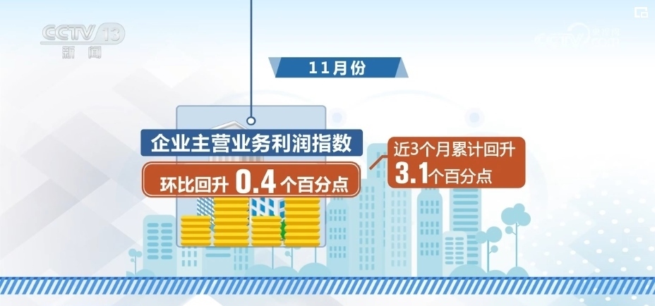 從分項指數來看,11月份,企業(yè)主營業(yè)務利潤指數環(huán)比回升0.4個百分點,近3個月累計回升3.1個百分點。