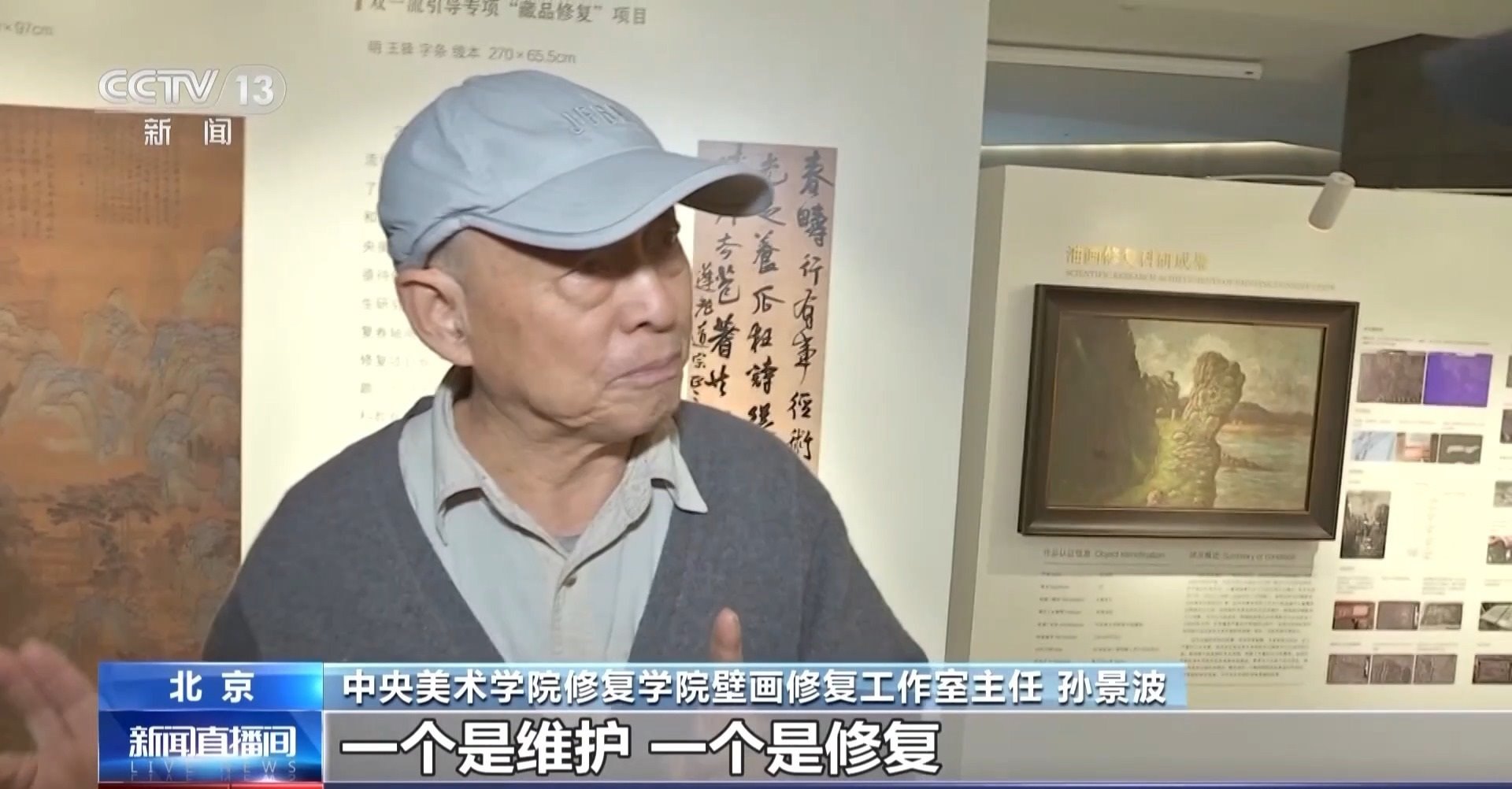 中央美術(shù)學(xué)院修復(fù)學(xué)院壁畫修復(fù)工作室主任 孫景波:我認(rèn)為第一叫保護(hù),保護(hù)里面有兩個(gè),一個(gè)是維護(hù),一個(gè)是修復(fù)。維護(hù)是第一要義。現(xiàn)有狀況能維護(hù)住的,這是最重要的。