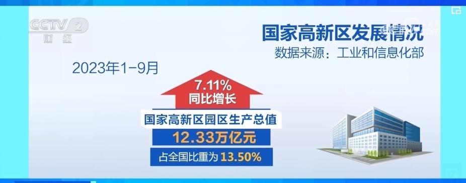 2023年前三季度,國家高新區(qū)園區(qū)生產總值為12.33萬億元,同比增長7.11%,占全國比重為13.50%,集聚了全國1/3的高新技術企業(yè)和2/3的科創(chuàng)板上市企業(yè)。