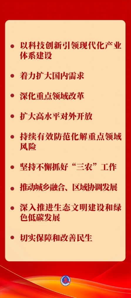 圍繞推動高質(zhì)量發(fā)展,這次中央經(jīng)濟(jì)工作會議對2024年要扎實做好的九項重點任務(wù)作出部署,體現(xiàn)了突出重點、把握關(guān)鍵的政策導(dǎo)向。
