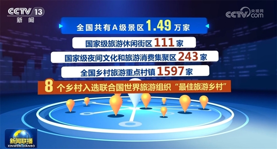 豐富優(yōu)質(zhì)旅游產(chǎn)品供給。目前全國(guó)共有A級(jí)景區(qū)1.49萬家,國(guó)家級(jí)旅游休閑街區(qū)111家,國(guó)家級(jí)夜間文化和旅游消費(fèi)集聚區(qū)243家,全國(guó)鄉(xiāng)村旅游重點(diǎn)村鎮(zhèn)1597家,8個(gè)鄉(xiāng)村入選聯(lián)合國(guó)世界旅游組織“最佳旅游鄉(xiāng)村”,成為文化和旅游賦能鄉(xiāng)村振興典型案例。