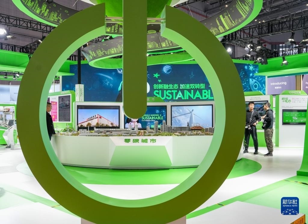 這是第六屆中國國際進(jìn)口博覽會施耐德電氣展臺展出的“零碳城市”愿景模型(2023年11月9日攝)。新華社記者 丁汀 攝