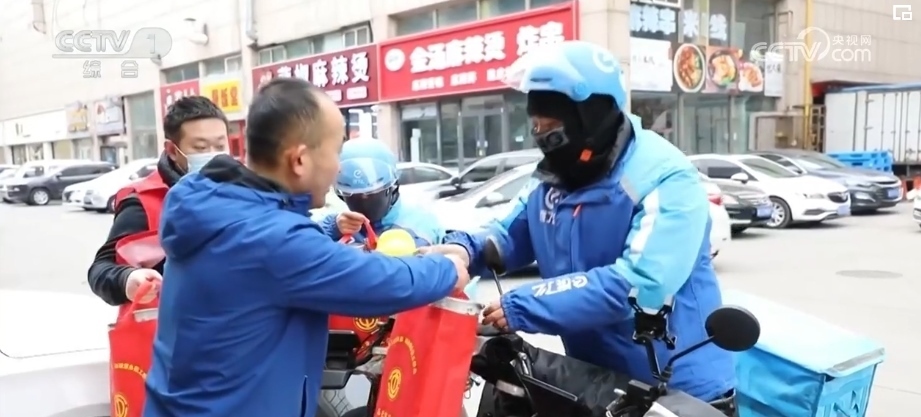 “冬日暖心”行動(dòng)小分隊(duì)隊(duì)員們,穿梭于物流公司和外賣(mài)小哥驛站,為貨車(chē)司機(jī)和外賣(mài)員送去方便面等生活用品。環(huán)衛(wèi)工人這兩天掃雪工作量大,很難按時(shí)吃上早餐,志愿者們便早早來(lái)到城區(qū)的街道,將一份份冒著熱氣的包子和粥送到環(huán)衛(wèi)工手中。