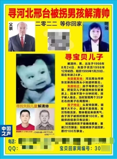 那是尋子25年的第一年。第一時(shí)間報(bào)警、發(fā)動(dòng)親友尋找,能想到的措施,解克鋒都用了。邢臺(tái)周邊、北京、河南,騎自行車、摩托車、坐火車,有一絲希望的地方,夫妻倆都去過(guò)。“盡快找到孩子吧,再耽誤下去,孩子長(zhǎng)大變了模樣,從眼前走過(guò)也認(rèn)不出了”, 這是一個(gè)父親最深的恐懼。