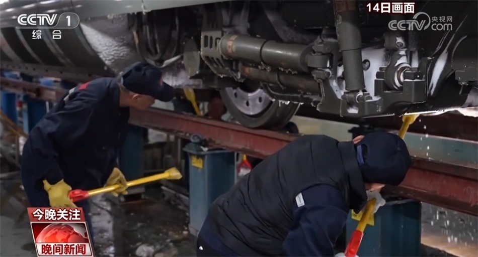 先除冰,再檢測(cè),列車檢修員們化身雪夜除冰人,一列車下來最快要半個(gè)小時(shí),如果趕上冰層厚的列車則需要三個(gè)小時(shí)。