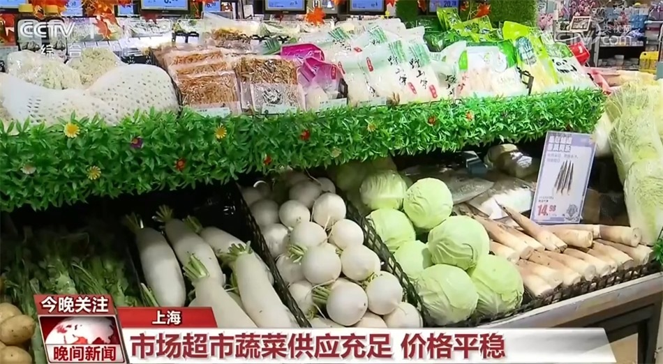 強(qiáng)冷空氣來襲,上海各菜場(chǎng)、超市和批發(fā)市場(chǎng)的商家們多措并舉,全力保供穩(wěn)價(jià)。在上海市金沙江路上的一家超市里,記者看到,五顏六色的蔬菜水果堆滿貨架,品種豐富,價(jià)格也比較穩(wěn)定。