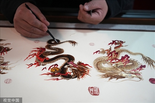 河南周口:非遺傳承人創(chuàng)作《九龍賀歲圖》蘆葦畫,形態(tài)各異活靈活現(xiàn)。