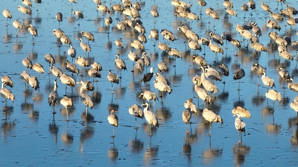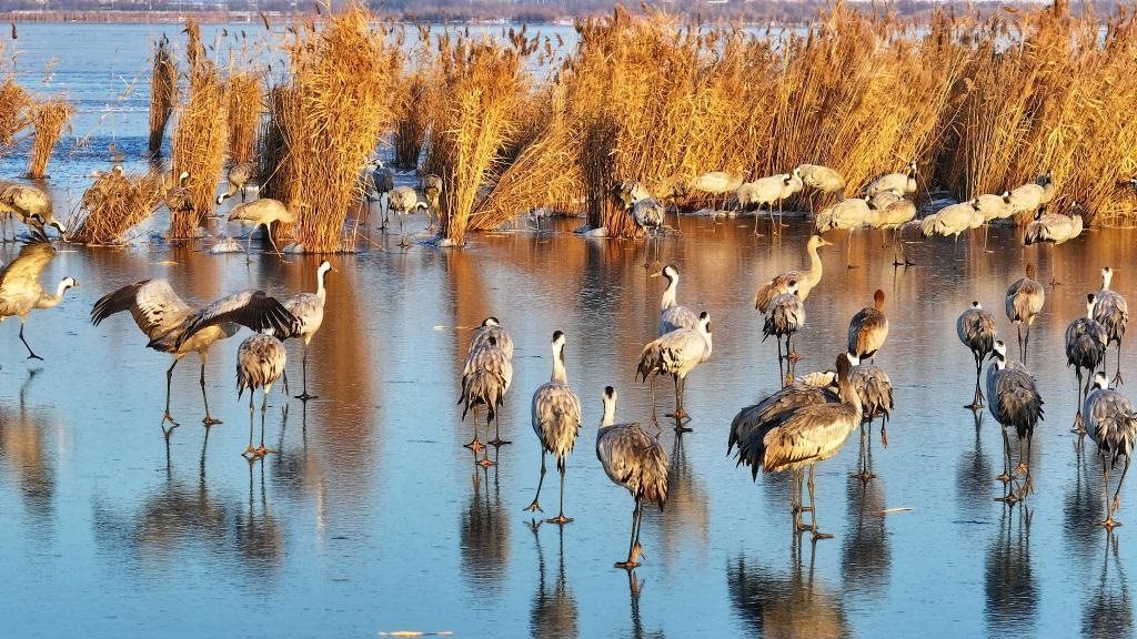 “12月初開始,鶴群陸續(xù)飛臨衡水湖。目前正處于候鳥越冬期,已有60余種、5萬余只候鳥飛到衡水湖越冬?!焙馑壹?jí)自然保護(hù)區(qū)資源保護(hù)局濕地生態(tài)監(jiān)測(cè)科科長張余廣說。