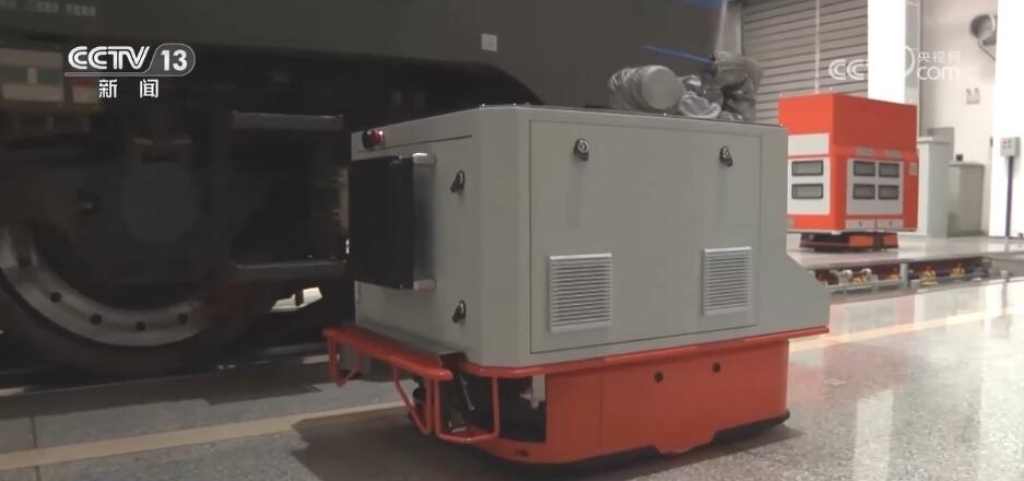 總臺記者 薛東海:列車途徑沿線隧道眾多,從而行駛過程當(dāng)中會積攢大量煤灰、粉塵,影響列車的安全。也意味著當(dāng)列車行駛到一段距離之后,就要來到庫區(qū)進(jìn)行維修和除塵工作。曾經(jīng)這項主要是依賴于人工,需要四名工人來到溝底進(jìn)行吹除作業(yè)。到了今年,這樣的工作被我旁邊的這個“小家伙”智能機(jī)器人取代了。