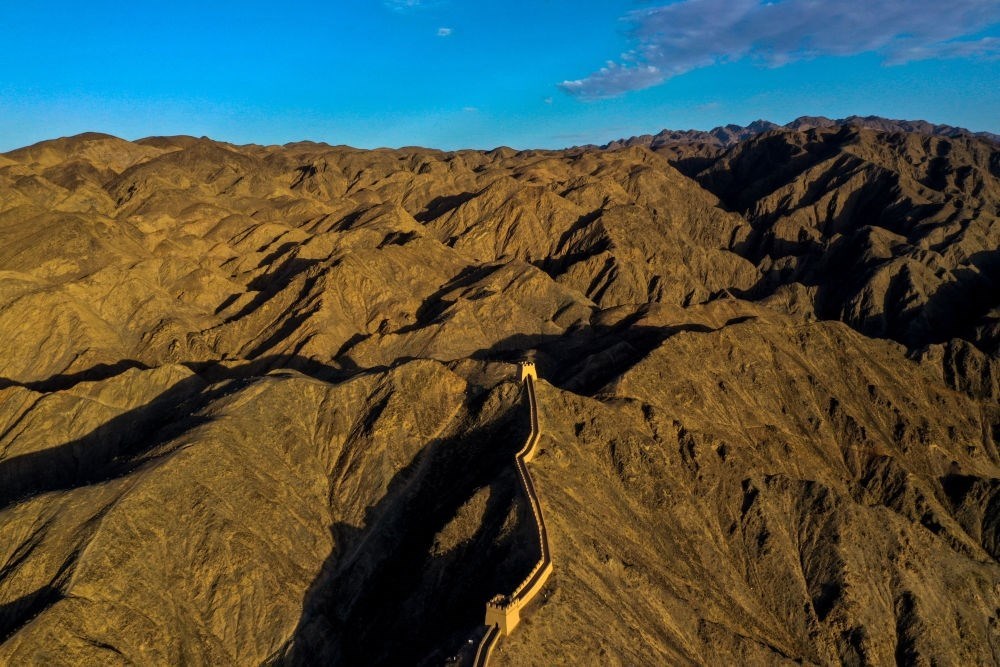 這是在甘肅省嘉峪關(guān)市拍攝的懸壁長(zhǎng)城(無人機(jī)照片,2023年7月15日攝)。
