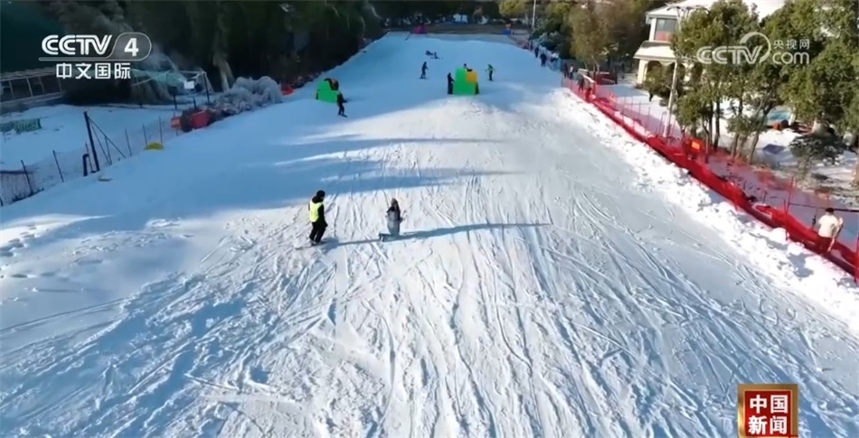 在連云港東海森林溫泉滑雪場,記者看到,100多米長的滑雪坡道頂峰處,許多游客在雪道上來回穿梭,體驗著滑雪運(yùn)動帶來的樂趣,感受著別樣的“速度與激情”。