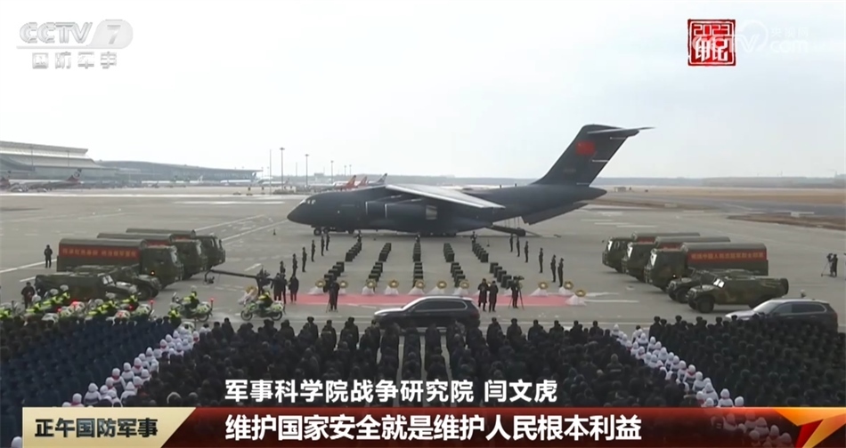 守護(hù)國(guó)防安全,我們每個(gè)人都是衛(wèi)士。今年11月,我們第十次迎回了抗美援朝保家衛(wèi)國(guó)的烈士遺骸。11月23日上午,遼寧沈陽(yáng)桃仙國(guó)際機(jī)場(chǎng),兩架殲-20戰(zhàn)機(jī)護(hù)航運(yùn)-20運(yùn)輸機(jī)呼嘯而來(lái),運(yùn)-20降落,緩緩?fù)ㄟ^(guò)水門(mén),以最高禮儀致敬英烈。