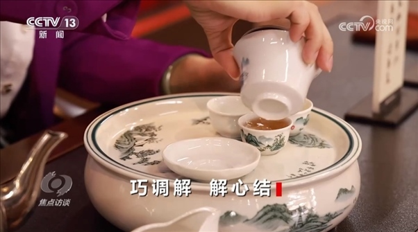 朱桂曼:“在調(diào)解過程中,我一邊給他們泡茶,一邊了解雙方當事人的立場和訴求,把握‘茶水均勻分配’的老規(guī)矩,不偏不倚,公正公平,結(jié)合講法講理講情,把握分寸,適度調(diào)解。就像我們泡茶時講究‘茶水七八分’,避免‘茶滿欺客’,矛盾激化。我勸兩位鄰居互相讓一讓,換位思考一下,鄰里之間以和為貴,低頭不見抬頭見?!?/p>