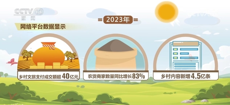相關(guān)網(wǎng)絡(luò)平臺(tái)數(shù)據(jù)顯示,2023年,鄉(xiāng)村文旅支付成交額超40億元,農(nóng)貨商家數(shù)量同比增長(zhǎng)83%,鄉(xiāng)村內(nèi)容新增4.5億條。數(shù)字技術(shù)和平臺(tái)在鄉(xiāng)村電商、鄉(xiāng)村文旅、鄉(xiāng)村人才等方面發(fā)揮了重要作用。