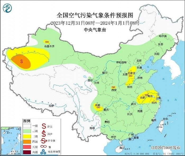 央視網(wǎng)消息:據(jù)中央氣象臺網(wǎng)站消息,12月29日早晨,中央氣象臺將大霧預(yù)警升級為最高等級的紅色,這也是今年首次發(fā)布大霧紅色預(yù)警。氣象監(jiān)測顯示,今晨,內(nèi)蒙古中部、寧夏北部、陜西、山西、河北中南部、天津、山東、河南、蘇皖中南部、浙江北部和西部、江西北部、湖北、湖南及四川盆地等地出現(xiàn)輕度到中度污染,部分地區(qū)重度污染;上述部分地區(qū)出現(xiàn)能見度不足1千米的大霧,其中河北、山東、安徽、江蘇、浙江及上海等局地能見度不足200米。今天早晨至上午時(shí)段,四川盆地至黃淮、江淮一帶的大霧天氣仍會(huì)持續(xù)。