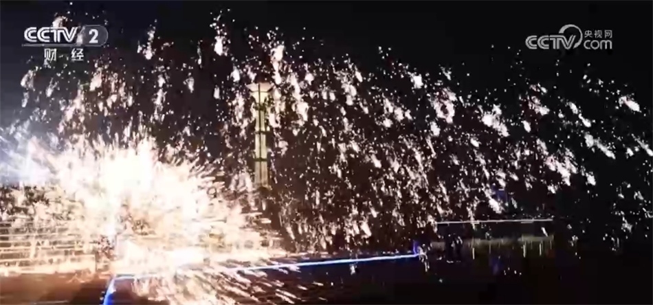 新年將至,大南門歷史文化街區(qū)里豐富多樣的民俗活動吸引了大批的游人。其中,特色表演滾花龍表演講究“圓”而“猛”,龍身舞動起來后更像是滾動的花環(huán),預示著新的一年里希望大家活力滿滿、努力奮進的美好祝愿。1600℃的鐵汁被高高拋起,被木板奮力打散,瞬間,夜空中萬點星辰散開,美不勝收。