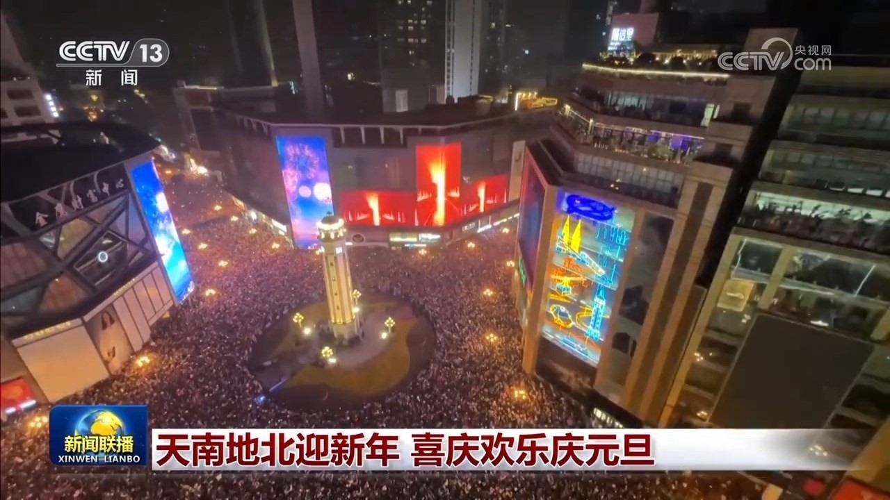 跨年夜,神州大地一派歡樂。在北京,新年倒計時主場活動在首鋼園舉行,精彩紛呈的光影秀、燈光雕塑、文藝表演等,將園區(qū)變成了歡樂的海洋。在江西南昌,充滿科技與未來感的燈光秀,在城市樓宇間變幻出一幅幅美麗的畫卷。在海南??凇不帐徍瑪?shù)百架無人機擺出各種歡度節(jié)日的字樣和圖案,喜迎新年的到來。在重慶解放碑中央廣場,眾多市民和游客共同聆聽新年鐘聲,許下美好的新年愿望。