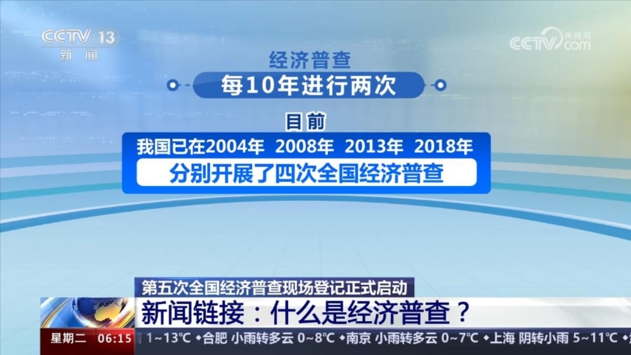 央視網(wǎng)消息:第五次全國(guó)經(jīng)濟(jì)普查現(xiàn)場(chǎng)登記工作1月1日正式啟動(dòng)。第五次全國(guó)經(jīng)濟(jì)普查承載著摸清我國(guó)“經(jīng)濟(jì)家底”、反映高質(zhì)量發(fā)展進(jìn)展的重要任務(wù),為制定實(shí)施國(guó)民經(jīng)濟(jì)社會(huì)發(fā)展規(guī)劃、服務(wù)推進(jìn)中國(guó)式現(xiàn)代化提供統(tǒng)計(jì)信息支撐。