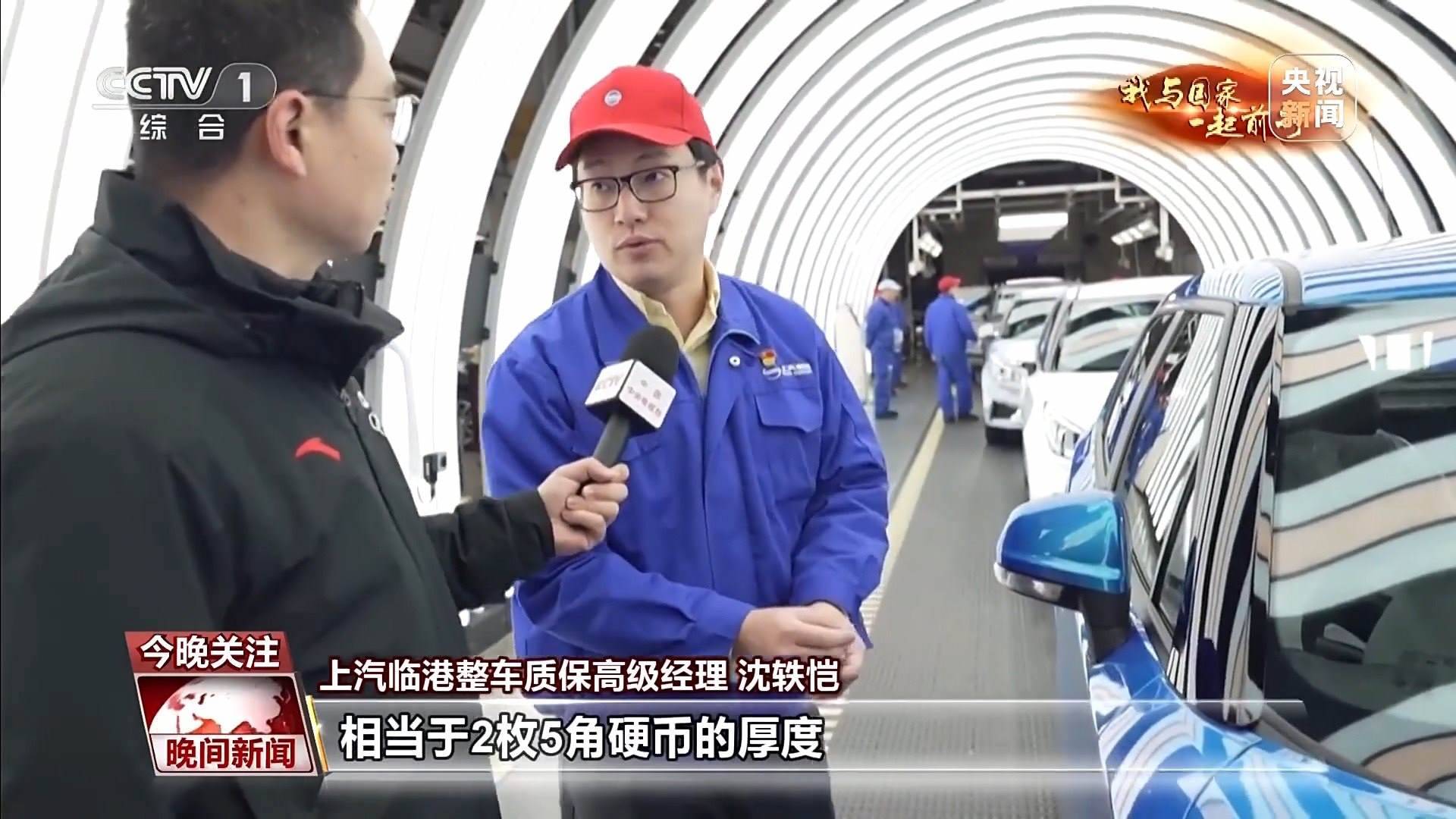 上汽臨港整車質(zhì)保高級經(jīng)理 沈軼愷:比如我們對于車門的縫隙控制,都有嚴(yán)格的質(zhì)量控制,確保它們拼合在一起是均勻的一致的。每條縫只有4毫米的間隙,相當(dāng)于2枚5角硬幣的厚度。