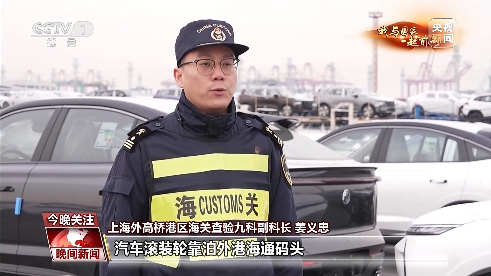 上海外高橋港區(qū)海關(guān)查驗(yàn)九科副科長 姜義忠:2023年平均每天都有2—3艘汽車滾裝輪靠泊外港海通碼頭。汽車出口可以實(shí)現(xiàn)“即報(bào)即放”“即查即放”,確保汽車出口“零延時”。
