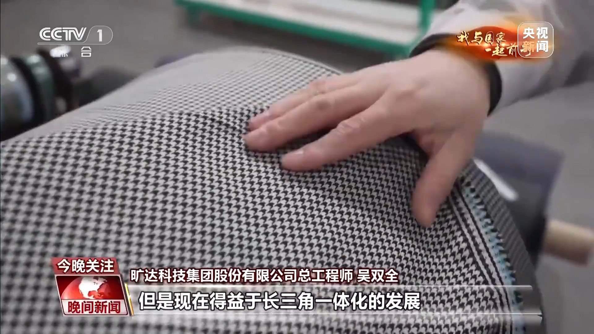 曠達(dá)科技集團(tuán)股份有限公司總工程師 吳雙全:這款面料,三年前我們開發(fā)這款產(chǎn)品,可能需要6到12個月的時間,但是現(xiàn)在得益于長三角一體化的發(fā)展和我們的產(chǎn)業(yè)鏈完備的這樣一個優(yōu)勢,從接到客戶需求到最終批量供貨,我們只需要3個月的時間。