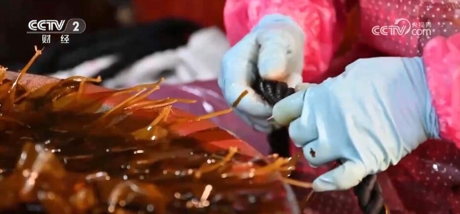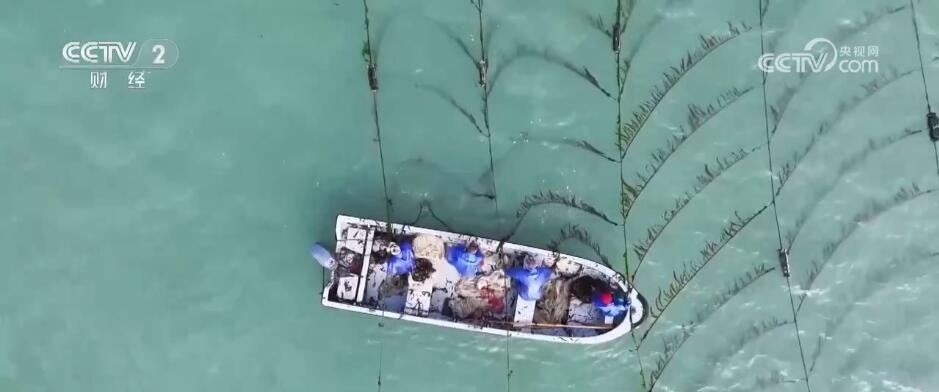 福清市海帶養(yǎng)殖戶 魏賢忠:現(xiàn)在是海帶分苗的黃金期,我們每天早上一點多就起床,趕著這段黃金期(分苗),一天的產量大概1000多條。
