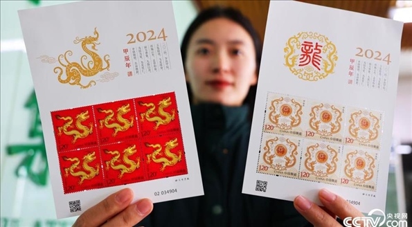 中國郵政定于2024年1月5日發(fā)行《甲辰年》特種郵票1套2枚,郵票圖案名稱分別為“天龍行健”和“辰龍獻(xiàn)瑞”。
