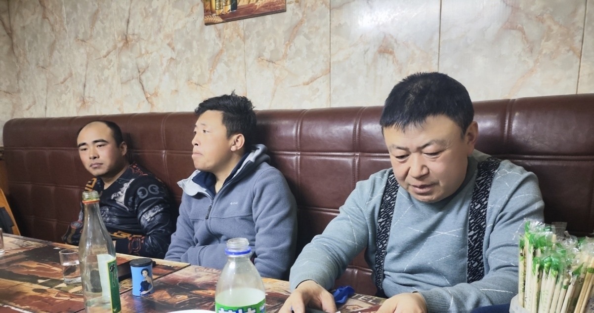 完工之后,一行人挪到附近的小飯館。鍋包肉、毛血旺,常點(diǎn)的幾個下飯菜,外加一瓶實(shí)惠的白酒一人分一杯,小半杯白酒下肚,身子終于熱了。