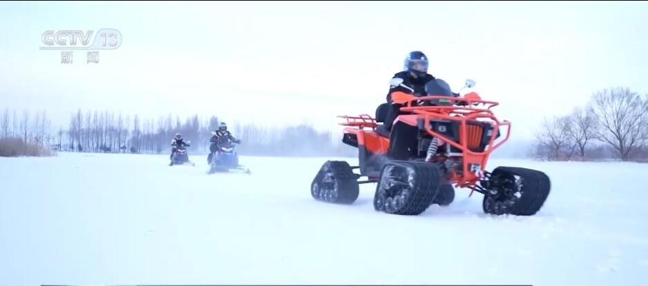 在同江市,當(dāng)?shù)匾惶幯┑啬ν性囻{現(xiàn)場(chǎng),機(jī)車(chē)轟鳴,四臺(tái)最新研發(fā)的雪地摩托是專(zhuān)門(mén)為冬季雪地旅行和娛樂(lè)而設(shè)計(jì)的機(jī)動(dòng)車(chē)輛。