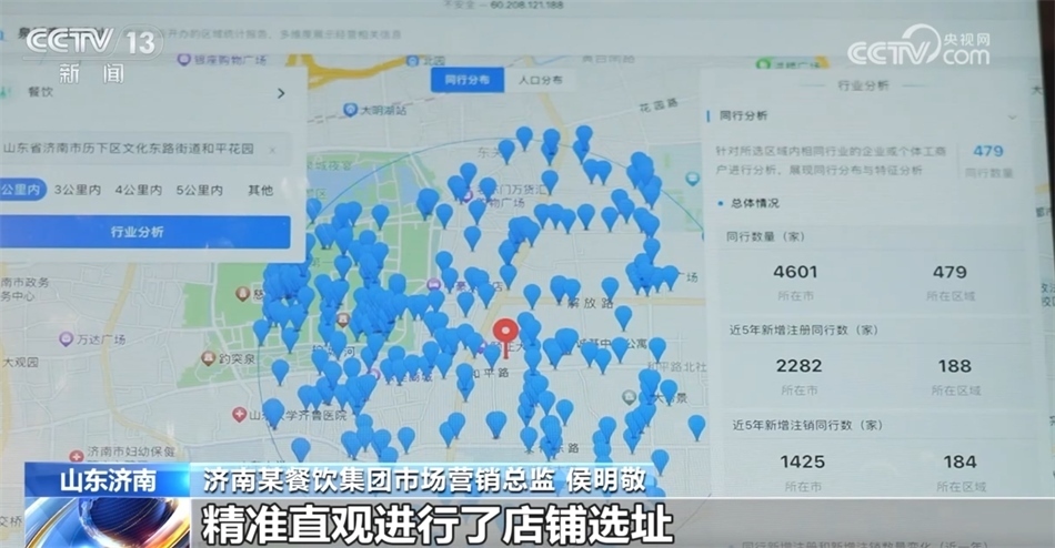 濟(jì)南某餐飲集團(tuán)市場(chǎng)營(yíng)銷(xiāo)總監(jiān) 侯明敬:我們通過(guò)“濟(jì)南公共數(shù)據(jù)開(kāi)放網(wǎng)”上的“泉城商業(yè)選址”應(yīng)用,精準(zhǔn)直觀進(jìn)行了店鋪選址。比如說(shuō)兩公里內(nèi)餐飲同行有479家,人口總量超過(guò)了24萬(wàn)人,其中31—50歲的比例最大,占到了29.9%,這和我們這家餐廳比較適合商務(wù)聚會(huì)、家庭聚會(huì)的市場(chǎng)定位非常吻合。