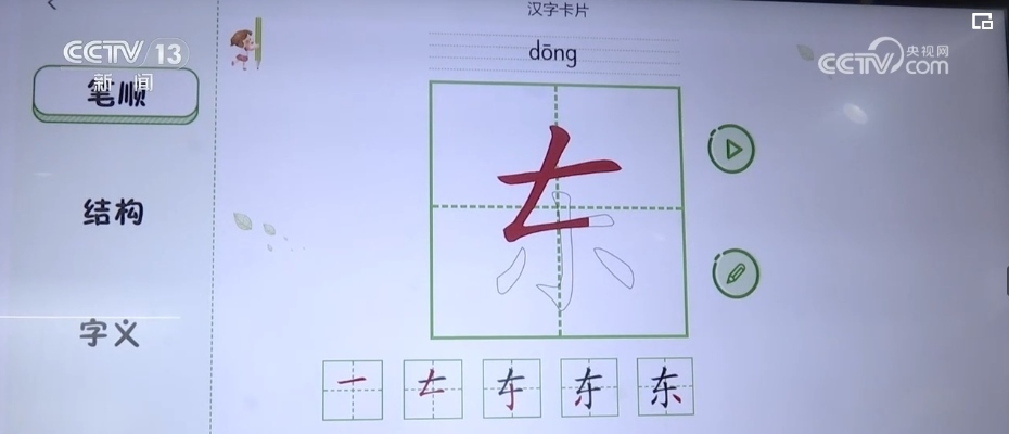 從一條小河到漢字“水”,充滿趣味性的動(dòng)畫演示了古人是如何從自然界獲得靈感創(chuàng)造出文字的。在智慧教學(xué)平臺(tái)中,數(shù)字化教材不再是簡(jiǎn)單地將紙質(zhì)書上的知識(shí)點(diǎn)平移到網(wǎng)絡(luò)上,而是通過(guò)模式創(chuàng)新、技術(shù)創(chuàng)新,來(lái)滿足廣大師生的應(yīng)用需求。