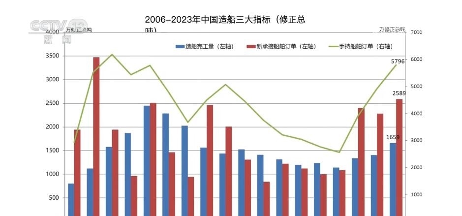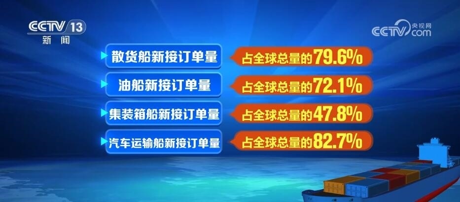 總臺央視記者 吳天白:在2023年中國造船業(yè)統(tǒng)計數(shù)據(jù)中,我們還可以看到三大指標(biāo)占國際市場份額分別是50.2%、66.6%和55.0%,首次全部超過50%。