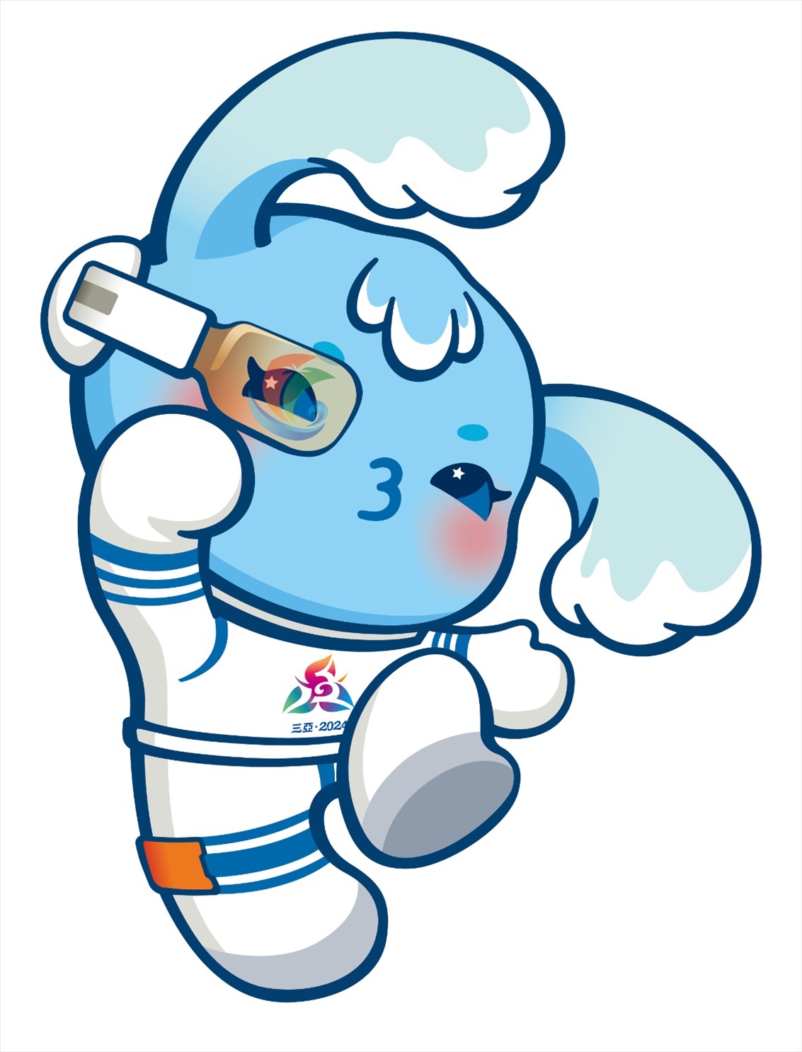 吉祥物由清華大學(xué)美術(shù)學(xué)院團(tuán)隊(duì)創(chuàng)作完成。吉祥物“吉貝”是一只海精靈,名字取自《尚書·禹貢》和蘇東坡的詩詞,在歷史上專指“黎錦”這一中華民族優(yōu)秀傳統(tǒng)文化的典型代表,黎錦也是世界級(jí)非物質(zhì)文化遺產(chǎn),同時(shí)“吉貝”也有“吉祥寶貝”的意思;海精靈身著宇航服,寓意星辰大海,佩戴的AI智能眼鏡中映射出海南自由貿(mào)易港的標(biāo)志,寓意科技與現(xiàn)代化。海精靈展現(xiàn)了中華民族團(tuán)結(jié)奮斗、揚(yáng)帆征程,攜手邁向中國(guó)式現(xiàn)代化的精氣神。