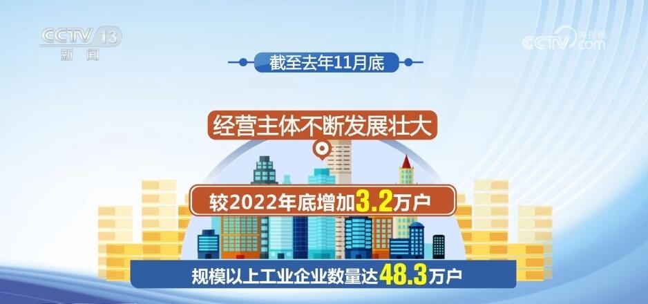 數(shù)據(jù)顯示,截至去年11月底,規(guī)模以上工業(yè)企業(yè)數(shù)量達(dá)48.3萬戶,較2022年底增加3.2萬戶,經(jīng)營(yíng)主體不斷發(fā)展壯大。制造業(yè)PMI生產(chǎn)經(jīng)營(yíng)活動(dòng)預(yù)期指數(shù)自2023年10月連續(xù)3個(gè)月上升,全年指數(shù)均高于臨界點(diǎn),制造業(yè)企業(yè)對(duì)發(fā)展信心穩(wěn)定恢復(fù)。