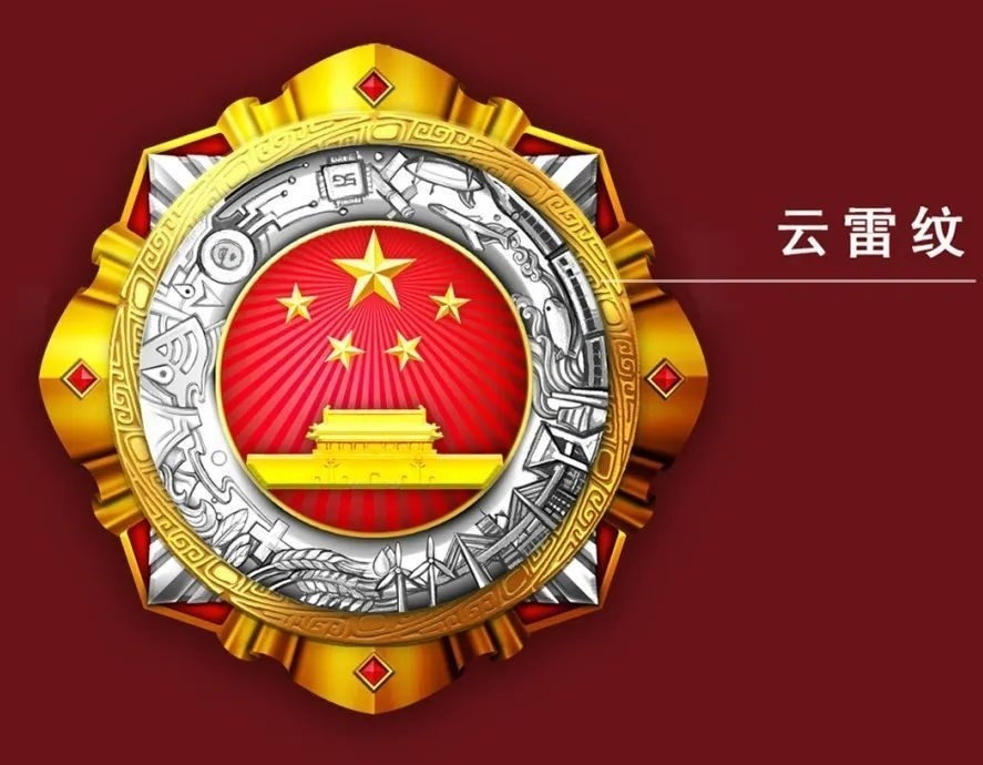 獎(jiǎng)?wù)抡麦w整體是個(gè)國(guó)徽的形狀,中間則是經(jīng)典的五角星與天安門(mén)元素,象征國(guó)家級(jí)榮譽(yù)。外圍的旗幟寓意獲獎(jiǎng)?wù)叩哪7兑I(lǐng),在黨的領(lǐng)導(dǎo)下,為實(shí)現(xiàn)理想永遠(yuǎn)奮斗。