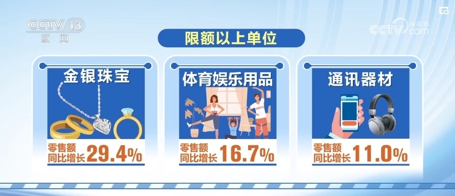 2023年12月,社會(huì)消費(fèi)品零售總額4.36萬億元,同比增長7.4%。其中,商品銷售穩(wěn)步增長,升級(jí)類商品消費(fèi)需求增長明顯。商品零售額同比增長4.8%,限額以上單位金銀珠寶、體育娛樂用品、通訊器材零售額同比分別增長了29.4%、16.7%和11.0%。