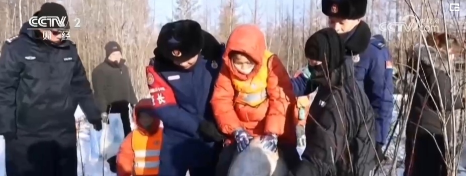在馴鹿園里,“小荔枝”們近距離與馴鹿接觸,在皚皚白雪地里撒歡兒,坐在雪圈上玩得那叫一個歡實(shí)。