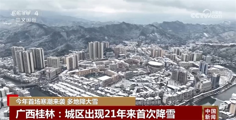 從21日到22日,廣西桂林市自北向南出現(xiàn)了一次大范圍的降雪天氣過程,桂林市城區(qū)更是出現(xiàn)21年來的首場降雪。