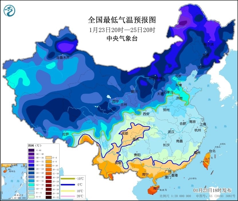 央視網(wǎng)消息:中央氣象臺(tái)1月23日18時(shí)繼續(xù)發(fā)布低溫藍(lán)色預(yù)警:預(yù)計(jì),1月24日至25日,貴州、湖南中南部、江西中南部、浙江中南部、福建、廣東、廣西東部等地最低氣溫或平均氣溫較歷史同期偏低5℃以上,其中,貴州中東部、湖南中部、江西中南部、浙江南部、福建西部、廣東西南部、廣西東南部等地的部分地區(qū)偏低7℃以上,最低氣溫0℃線位于廣西北部、廣東北部一帶 。