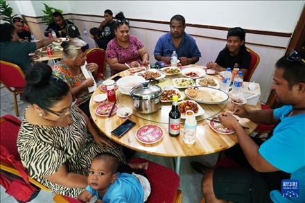 1月22日,人們在瑙魯一家中餐館聚餐。新華社記者 王申 攝