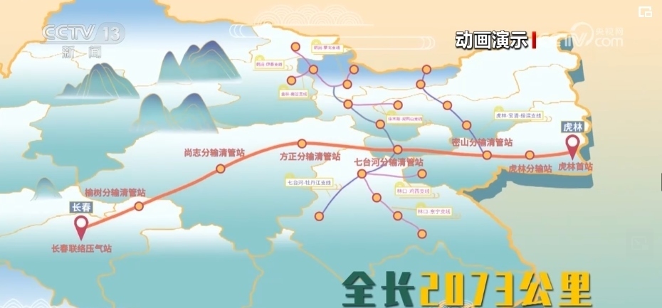 主干線起自黑龍江虎林,止于吉林長春,總長度795公里,設(shè)計(jì)壓力10兆帕,每年可輸送天然氣100億立方米。建成后,每年可新增天然氣供應(yīng)量100億立方米,有效提升我國東部能源通道保供能力。