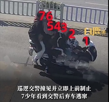 ·湖南郴州,7名未成年搭乘1摩托車,幸好被交警截停。