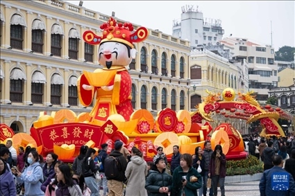 1月27日,游客在澳門議事亭前地游覽。