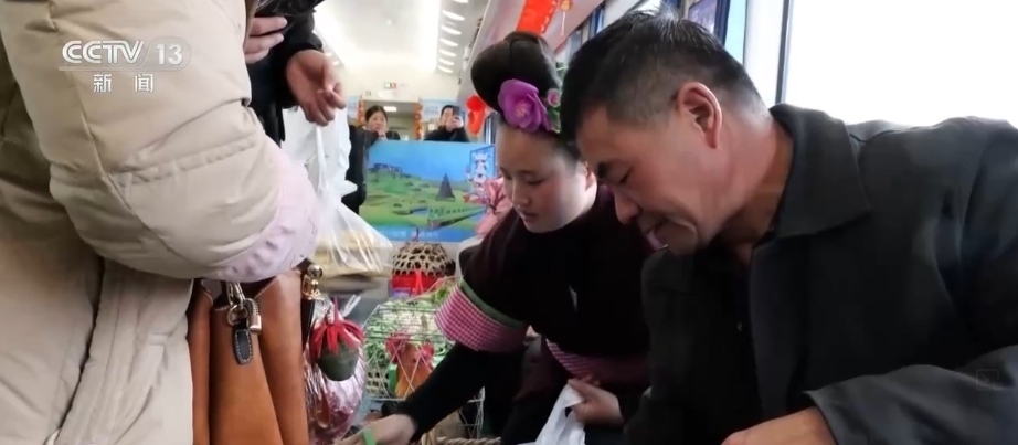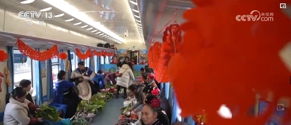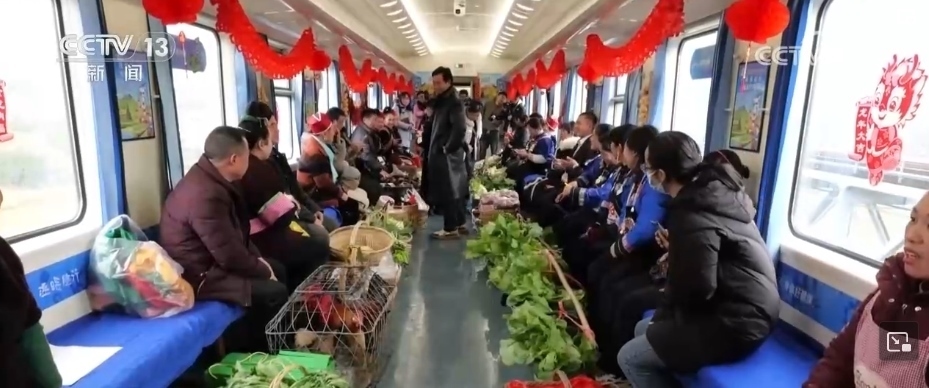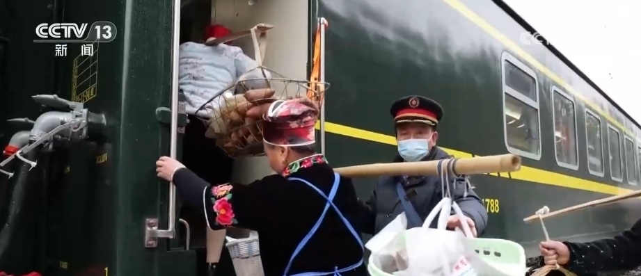 這趟“慢火車”,是鄉(xiāng)親們走親訪友的“幸福快車”,更是把大山里的農(nóng)特產(chǎn)品送到山外售賣的“致富快車”。新春臨近,列車上的農(nóng)特產(chǎn)品車廂變得熱鬧起來,村民們將自家的年貨拿上車售賣,車廂里喜氣洋洋。