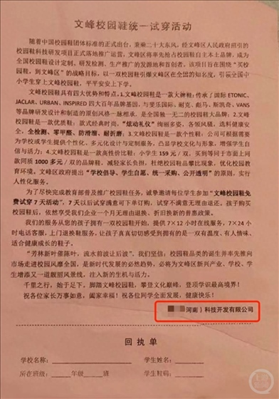 ·無(wú)工商登記的科技公司在河南安陽(yáng)推廣校園鞋,159元一雙,教育局:“是有校園鞋試穿活動(dòng),對(duì)公司情況不清楚?!鄙媸鹿荆汗久謱戝e(cuò)了。